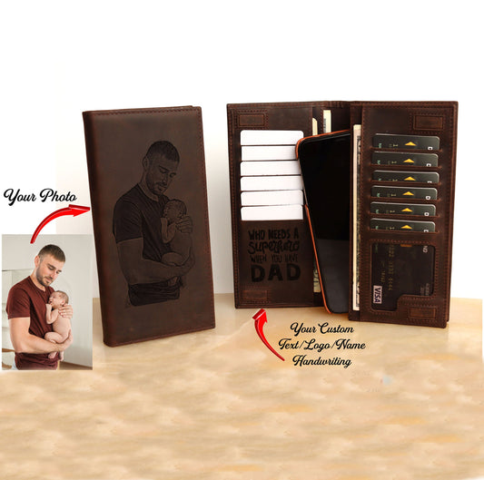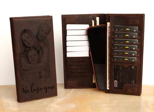 Personalized Long Wallet, Photo Handwriting Genuine Leather Wallet, RFID Protected LHL005