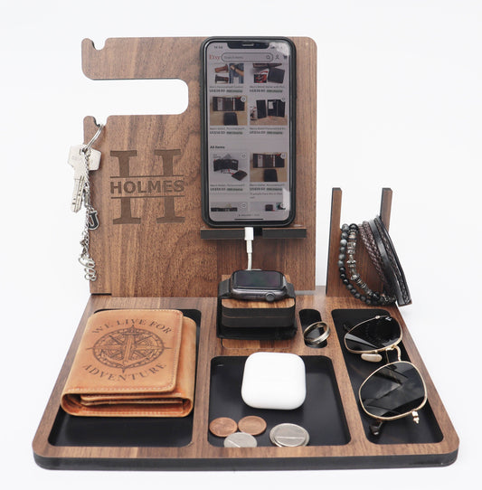 Personalized Phone Charging Docking Station, Desk Organizer, for iPhone and Android, Christmas Gift, Modern Minimalist Design, Gift for Men