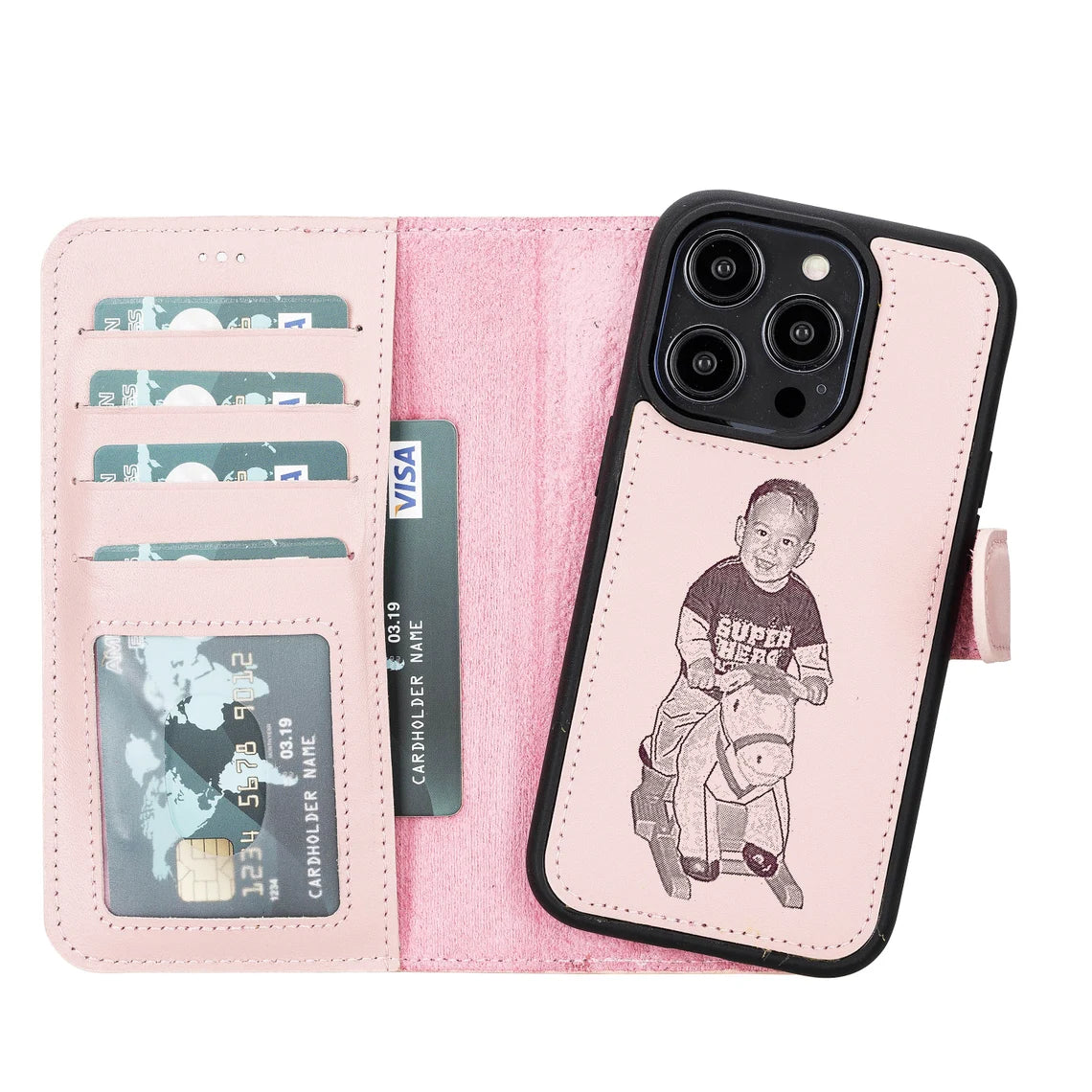 Custom iPhone 14 Pro Max Leather Case RFID PROTECTED Wallet Wireless Charging, Engraved 14 Plus Magnetic Case, Personalized 14 Pro Max